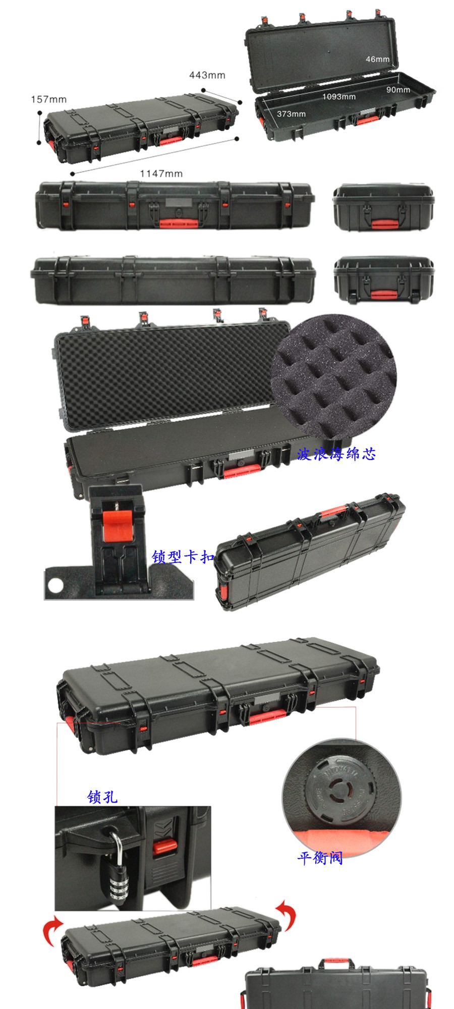 簡要說明:廣泛用于傳媒、公安、消防、軍隊、航空、戶外攝影、野外考察、科學探測等眾多領域的高端儀器、儀表。具有高強度、高抗壓沖擊、防潮、絕對密封、防塵、防水等特點。產(chǎn)品材質:ABS原料,箱體采用高抗沖擊的高分子聚合材料一體注塑成型,密封采用扁型彈性發(fā)泡密封橡膠條,確保防水氣密,所有較軸均采用不銹鋼材質。